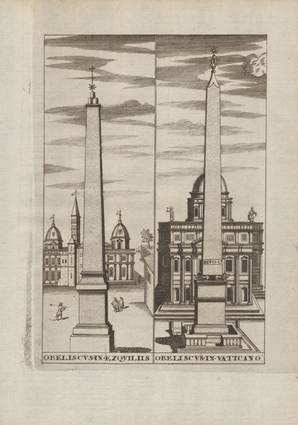 Egipto obeliskas Vatikano aikštėje. Į šią vietą perkeltas 1586 m. popiežiaus Siksto V iniciatyva. Matome jį mes, matė ir Sarbievijus.