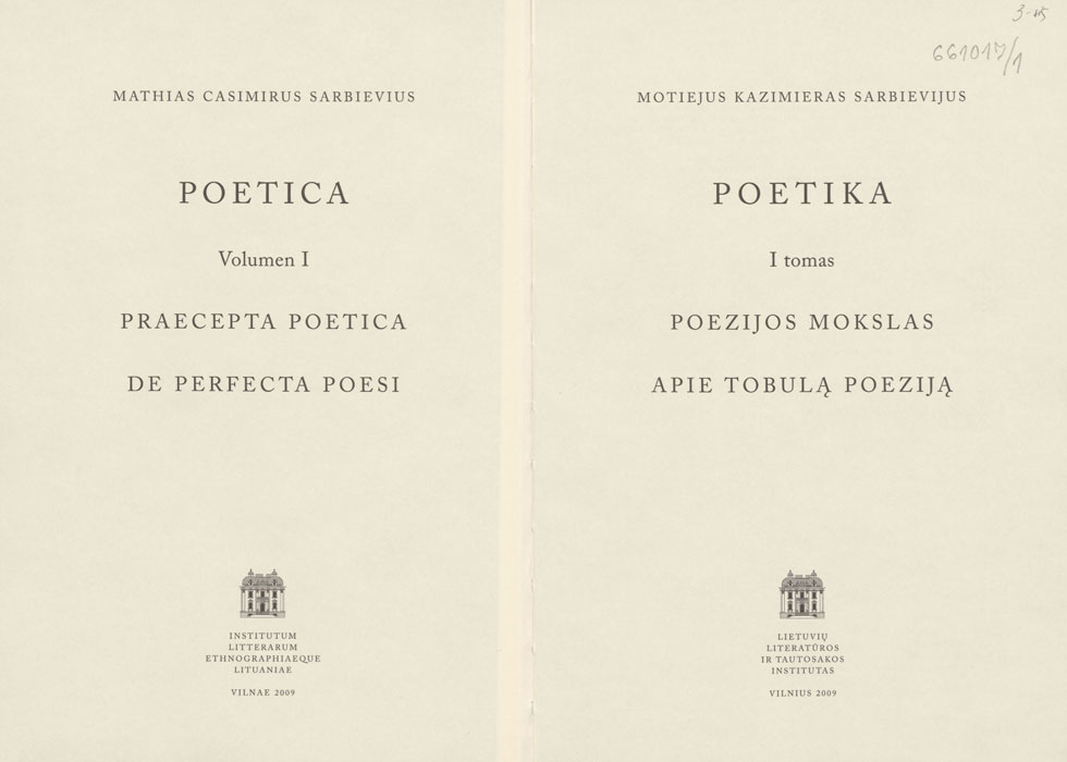 Motiejus Kazimieras Sarbievijus ne tik poetas, bet ir literatūros teoretikas, pedagogas. Buvo puikus retorikos ir poetikos žinovas. Baroko literatūrai poveikį darė jo poetikos veikalai, nors jie nebuvo išspausdinti, o po Europą plito nuorašais. Poetikoje aptariami pagrindiniai poezijos žanrai: epigrama, elegija, lyrika, epas. Akademinė Sarbievijaus poetikos veikalų publikacija parengta lenkų mokslininko Stanislovo Skiminos tik XX a. Traktatai buvo suskirstyti į du tomus ir publikuoti kartu su vertimu į lenkų kalbą. Dabar ir Lietuvos visuomenei pasiekiamas lotyniškas Poezijos mokslo leidinys, kurį parengė, papildė, parašė pratarmę bei sudarė rodykles literatūros mokslininkė, Sarbievijaus kūrybos tyrėja ir vertėja Ona Dilytė-Čiurinskienė (Daukšienė).