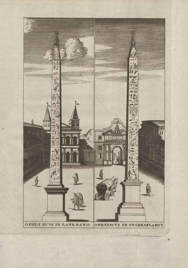 Aikštės šalia Laterano bazilikos viduryje architektas Domenico Fontana (1543–1607) 1588 m. pastatė XVIII Egipto faraonų dinastijos obeliską, kurį buvo pasistatę Tutmozis III ir jo palikuonis Tutmosis IV.