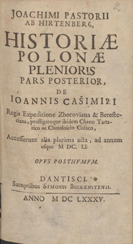 Joachimo Pastorijaus (Joachimus Pastorius, 1611–1681) karjera buvo nepaprastai įvairi, kupina pasiekimų, jis buvo žymus asmuo Lenkijos istorijoje. Gydytojas, istorikas, filosofas, poetas, valdovų Vladislovo IV Vazos ir Jono II Kazimiero Vazos istoriografas, taikos derybų Olivoje sekretorius (1660 m.). Istorijos profesorius akademinėse gimnazijose Elbinge (1651–1654 m.) ir Gdanske (1655–1667 m.), tuo pačiu ir Gdansko miesto gydytojas. Kurį laiką aktyviai dalyvavo Lenkijos brolių religiniame gyvenime, per liuteronybę atsivertė į katalikybę. Mirus žmonai, 1675 m. buvo įšventintas kunigu, 1680 m. tapo Varmijos kanauninku. Parašė populiarų mokyklinį Lenkijos istorijos vadovėlį Florus Polonicus (1641 m.), Historia Polona (1680 m.), kūrė poeziją (panegirikas, epigramas). Dalyvaudamas Olivoje vykusiose taikos derybose protokolavo posėdžius, rašė dienoraštį. Ši medžiaga 1763 m. buvo išleista pavadinimu Acta pacis Olivensis inedita. Už nuopelnus derybų metu Šventosios Romos imperijos imperatorius Leopoldas I (1640–1705) 1660 m. suteikė jam bajoro titulą (jis gavo pavardę ab Hirtenberg).
