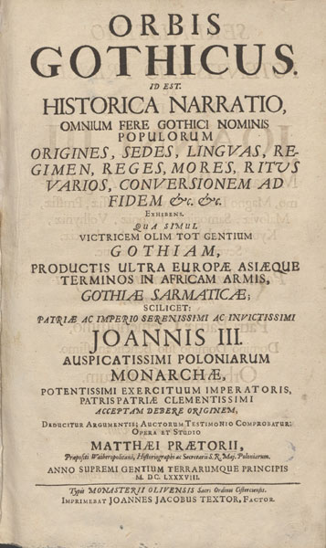 Gotų pasaulis dedikuotas Lenkijos karaliui ir Lietuvos didžiajam kunigaikščiui Jonui III Sobieskiui, galingiausiam krikščionių karinių pajėgų vadui, apgynusiam krikščioniškąjį pasaulį nuo musulmoniškojo.