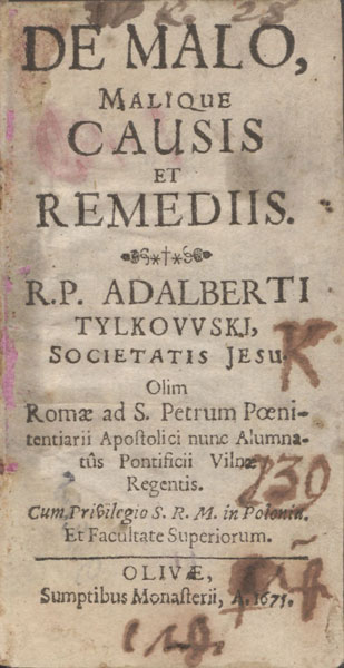 1675 m. Olivoje vienuolyno lėšomis išleista knyga Apie blogį bei blogio priežastis ir apsaugas, [parašyta] garbiojo Jėzaus Draugijos tėvo Adalberto Tilkovskio, kitados Romoje Šv. Petro bazilikos apaštalinio penitenciaro, nūnai Vilniaus popiežiškosios kunigų seminarijos (alumnato) valdytojo.