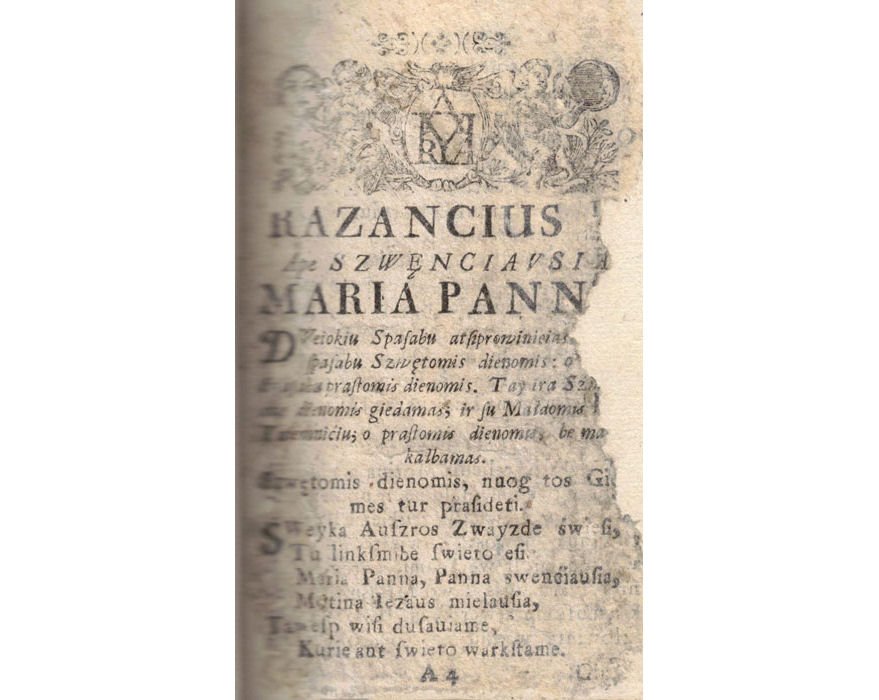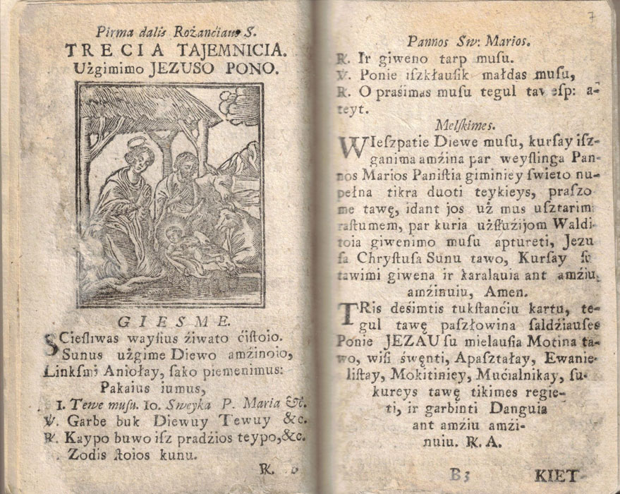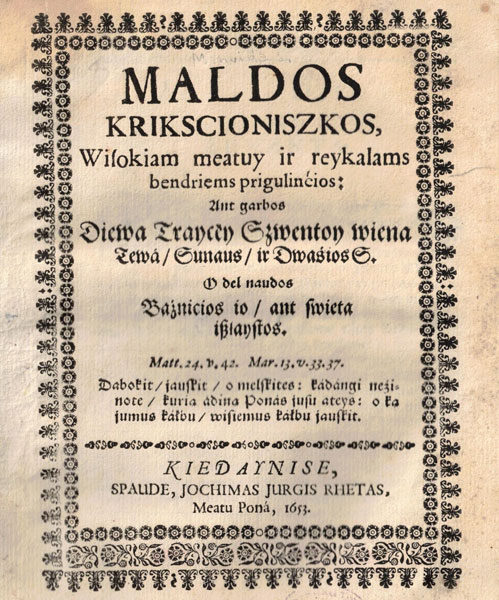 Dominikonų vienuolis Jurgis Kasakauskis (apie 1650 – po 1711) parengė ir 1681 m. išleido pirmąją katalikišką maldaknygę lietuvių kalba Rožančius Švenčiausios Marijos panos ir saldžiausio vardo Jėzuso... Ji iki 1864 m. išleista 45 kartus. LMA Vrublevskių bibliotekoje saugomas defektinis 5-ojo leidimo egzempliorius.