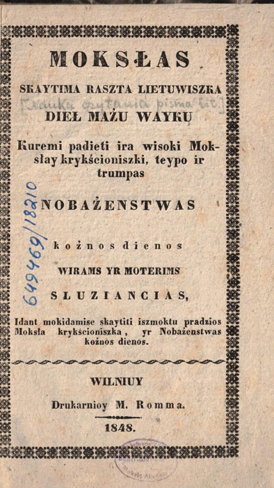Ankstyviausias Vrublevskių bibliotekoje saugomas šio populiaraus pradžiamokslio egzempliorius – reta 1848 metų Rommo spaustuvėje pasirodžiusios laidos knyga.