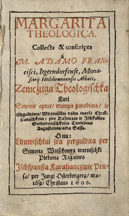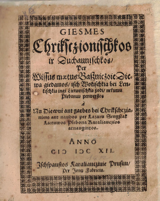 Unikalus (tik LMA Vrublevskių bibliotekoje išlikęs) leidybinis konvoliutas – Karaliaučiaus lietuvių parapijos klebono Lozoriaus Zengštoko (Sengstak, 1562–1621) parengti leidiniai, 1612 metais išėję Karaliaučiuje, Jono Fabricijaus spaustuvėje: Martino Lutherio (1483–1546) Enchiridion. Katechismas maszas...; Evagelias bei epistolas... (abi knygas iš vokiečių kalbos vertė Baltramiejus Vilentas, 1525–1587); Giesmes chriksczionischkos ir duchaunischkos. Didžiąją pastarosios knygos dalį sudaro Martyno Mažvydo (apie 1510–1563) ir Jono Bretkūno (1536–1602) giesmės, o likusią – paties Zengštoko bei kitų autorių (tarp jų – dvi S. Vaišnoro giesmės) versti kūriniai.