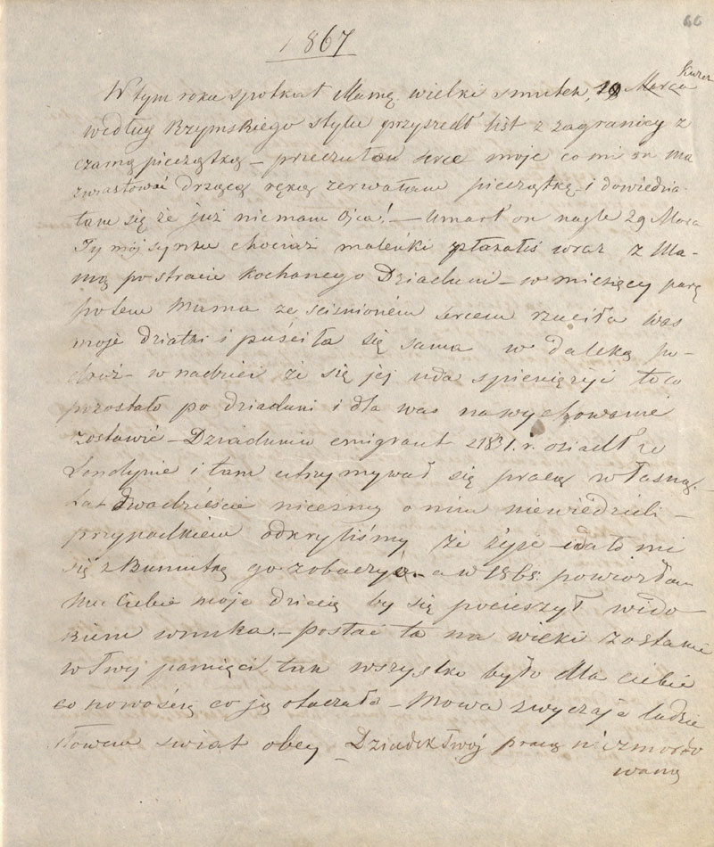 Skausmą, ištikusį atėjus laiškui, kuriuo buvo pranešta apie Beniowskio mirtį, Emilija aprašė sūnui Tadui skirtame dienoraštyje: „Tu, mano sūneli, nors ir mažas, verkei kartu su mama, netekęs mylimo senelio“.