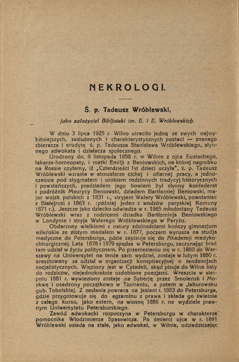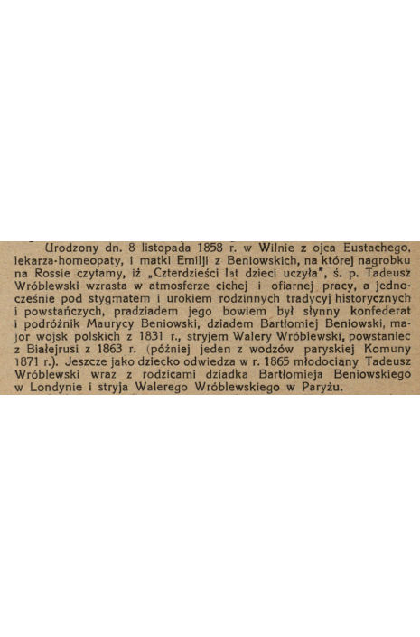 Nesusipratimų kyla ir aiškinantis, kas buvo Bartłomiejaus Beniowskio tėvas. Tikėtina, kad jo anūkas Tadas Stanislovas Vrublevskis (Tadeusz Stanisław Wróblewski, 1858–1925) galvojo savo protėvį buvus garsųjį grafą Maurycy′jų Augustą Beniowskį (1746–1786). Tokias prielaidas galima daryti iš „Ateneum Wileńskie“ išspausdinto nekrologo, kurį parašė Helena Drège (1888–1956), ilgametė T. S. Vrublevskio padėjėja, daug metų besirūpinusi jo biblioteka. Visgi abiejų Beniowskių gyvenimo datos neleidžia garsiojo keliautojo laikyti tiesiogine Bartłomiejaus Beniowskio gimine.