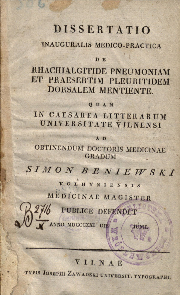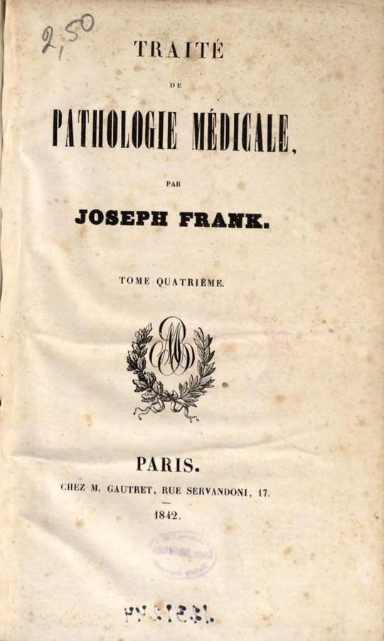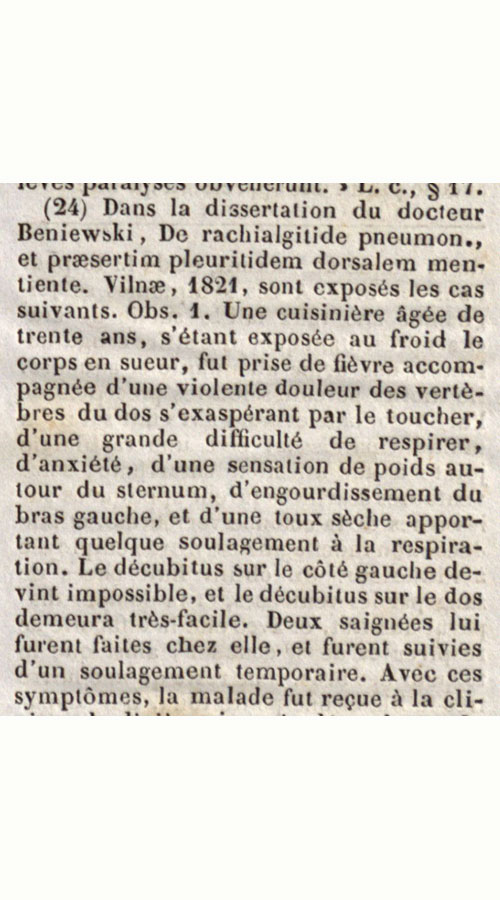 Šią disertaciją savo veikale „Traité de Pathologie médicale“ mini ir garsusis Vilniaus universiteto medicinos profesorius Josephas Frankas (1771–1842).