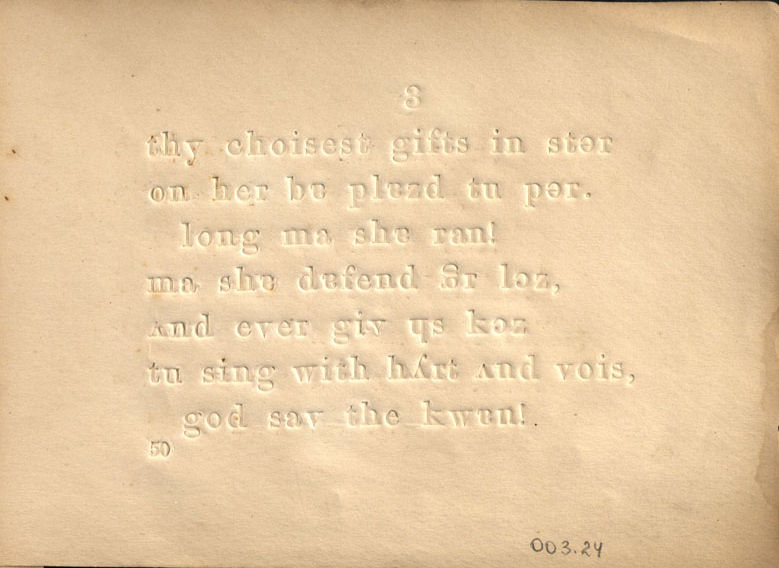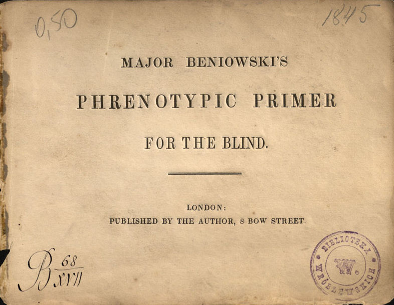 Čia jis ne tik mokė, bet ir 1843 metais nusipirkęs spausdinimo mašiną, atidarė nedidelę spaustuvę. Joje, be kitų knygų, ėmėsi spausdinti ir knygas neregiams. Nors Louisas Braille′is (1809–1852) savo taškais sudėliotu alfabetu pirmą kartą tekstą išspausdino jau 1829 metais, jo šriftas dar nebuvo visuotinai priimtas, tad ir toliau buvo kuriami įvairūs kiti spausdinimo būdai. Beniowskis savo knygą atspausdino antiabsurdiškąja ortografija. Jo knygoje buvo abėcėlė, raidžių junginiai ir žodžiai, turėję padėti mokytis skaityti, taip pat „Tėve mūsų“ malda ir Anglijos himnas „God save our gracious Queen“ su natomis. Jo spausdinimo būdas buvo giriamas dėl to, kad jam nereikėjo papildomų priemonių, buvo galima naudoti tuos pačius spaudmenis kaip ir spausdinant įprastai.