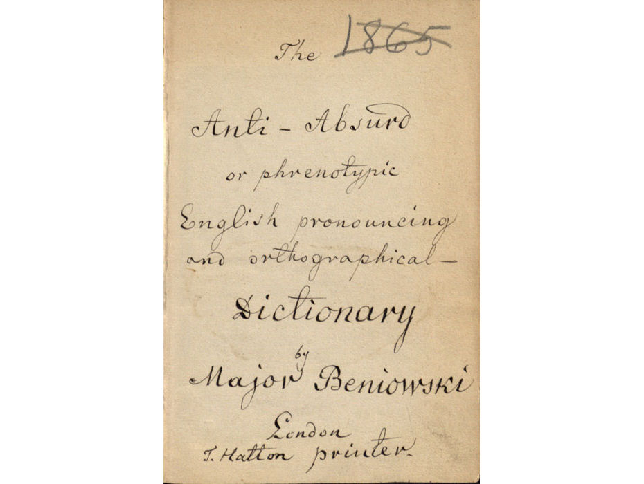 Beniowskis galėjo žadėti kitus greitai išmokyti užsienio kalbų remdamasis savo patirtimi. Dar kelionės į Angliją metu su dviem savo bendrakeleiviais jis susilažino, kad plaukimo metu, per tris keturias valandas, išmoks 2000 angliškų žodžių. Lažybas jis laimėjo, tiesa, visgi atplaukęs restorane nesugebėjo susikalbėti su padavėju – joks anglas nesuprato nė žodžio, nes jis maišė „salad“ ir „sailed“, „fair“ ir „far“ tarimą. Šis prisiminimas jį paskatino imtis anglų kalbos ortografijos reformos ir ištaisyti šios kalbos rašybos netobulumus. Savo ortografiją jis pavadino antiabsurdiška, nes, jo supratimu, to meto rašyba buvo absurdiška: vienodai parašytos raidės buvo tariamos skirtingai, o skirtingai parašytosios – vienodai. Jis bandė sukurti rašybos būdą, kur kiekvienas garsas visuomet būtų užrašomas viena ir ta pačia raide.